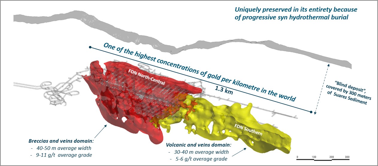 FDNS: The FDNS deposit is a buried epithermal vein system recently defined across the southern limit of FDN.